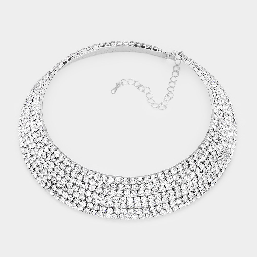 Teardrop Round Stone Embellished Statement Evening Necklace