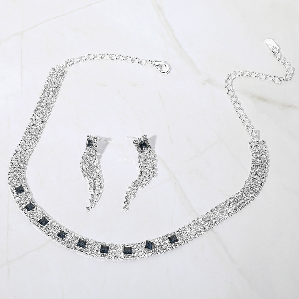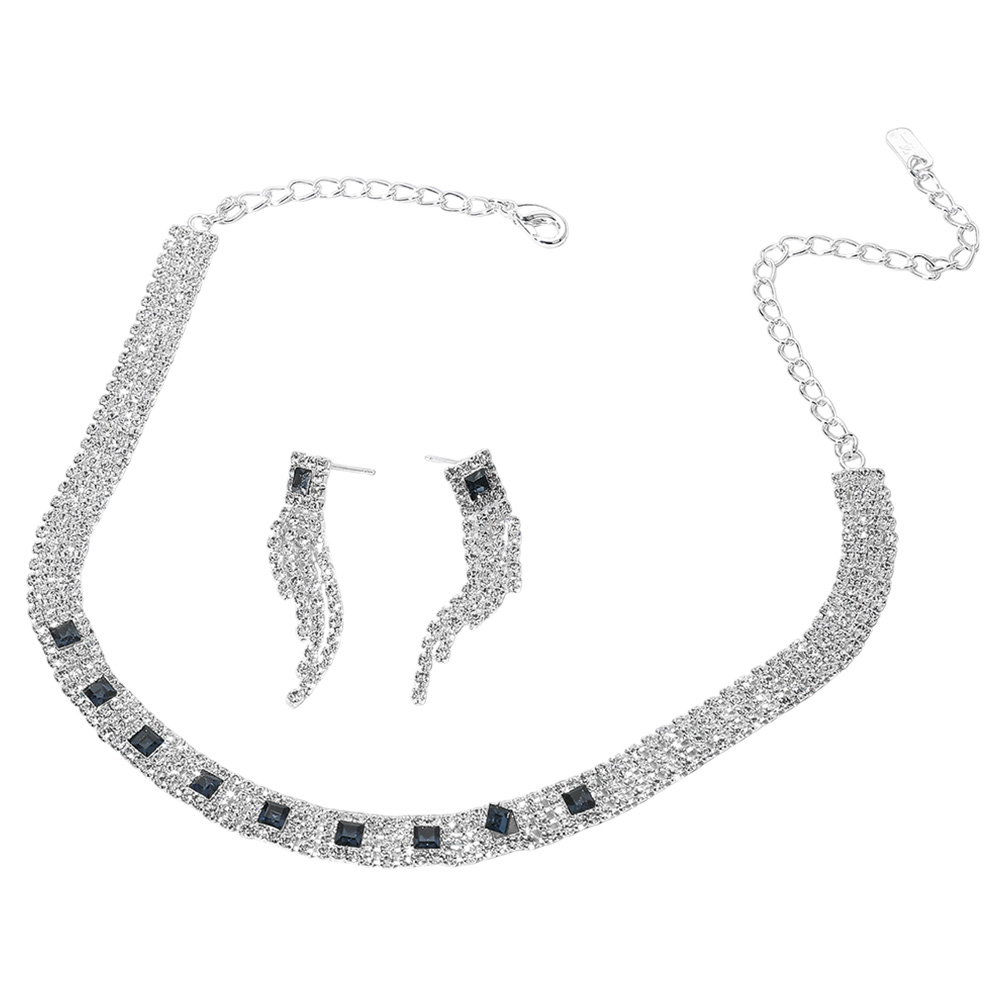 • Turn heads with this rhinestone choker and earring set featuring shimmering strands and square accent stones. Designed for elegant evenings, parties, or special occasions, this coordinated set delivers striking sparkle and a refined touch to any glamorous ensemble.