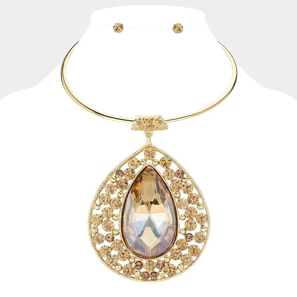 Teardrop Centered Bubble Stone Cluster Choker Evening Necklace