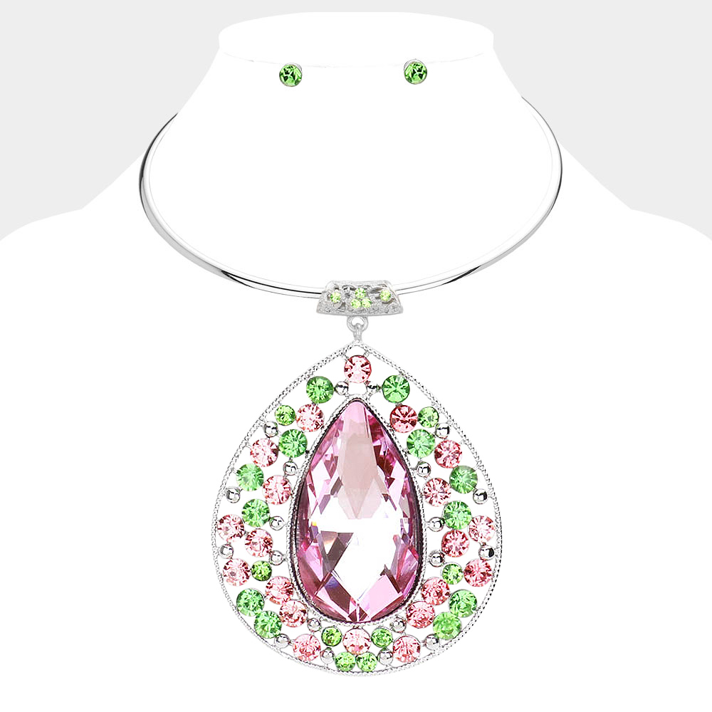 Teardrop Centered Bubble Stone Cluster Choker Evening Necklace