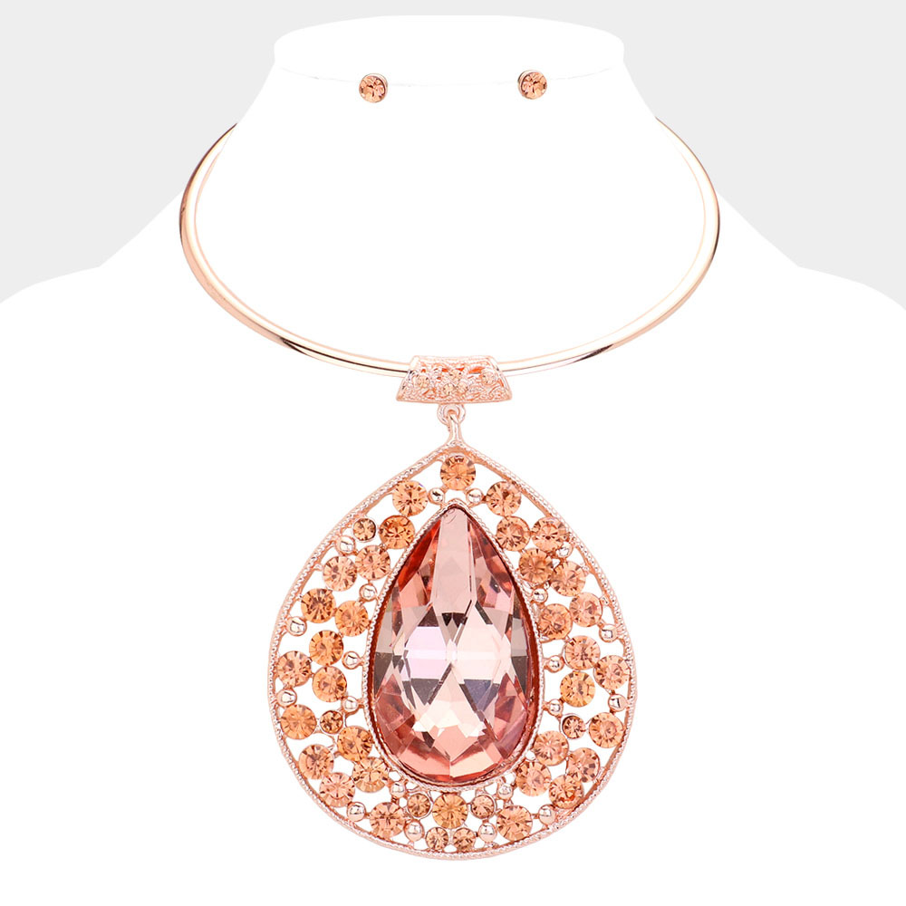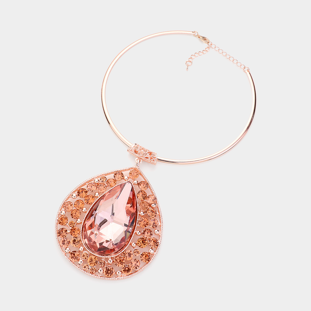 Teardrop Centered Bubble Stone Cluster Choker Evening Necklace