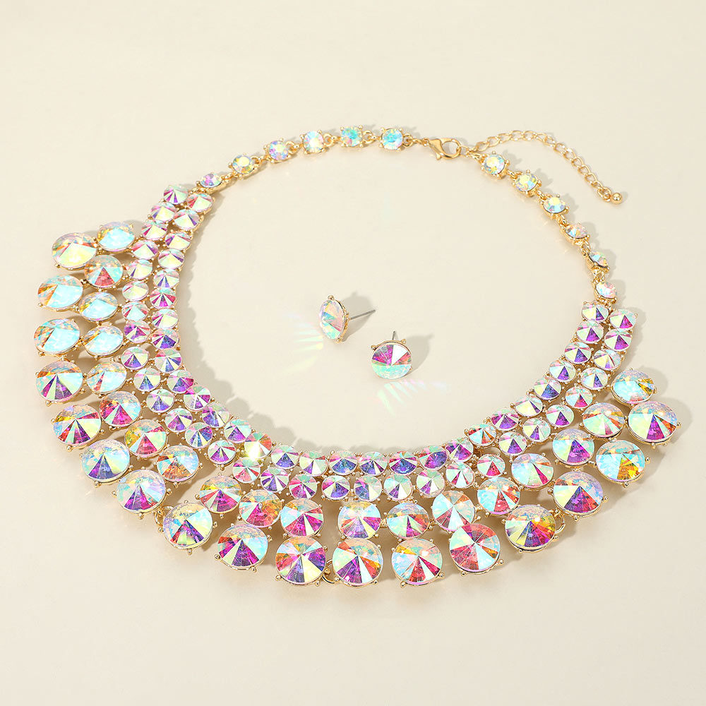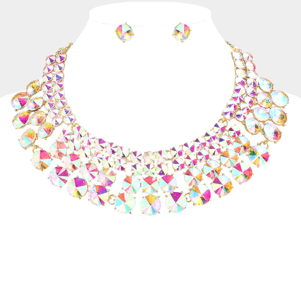 Marquise Stone Cluster Embellished Collar Evening Necklace