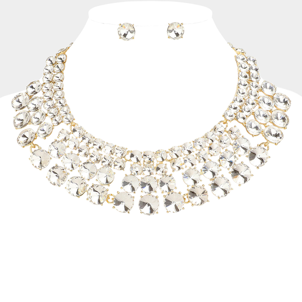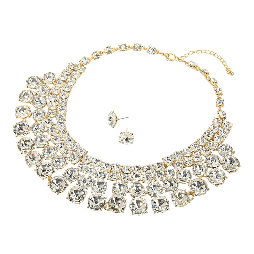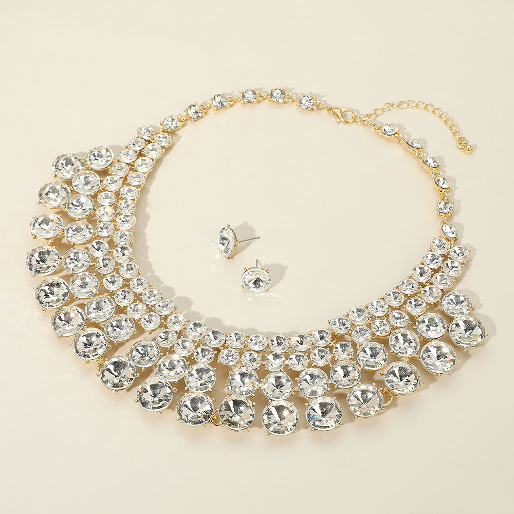 Rhinestone Metal Ball Chain Fringe Choker Necklace