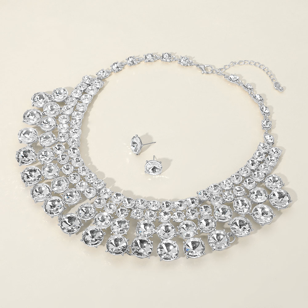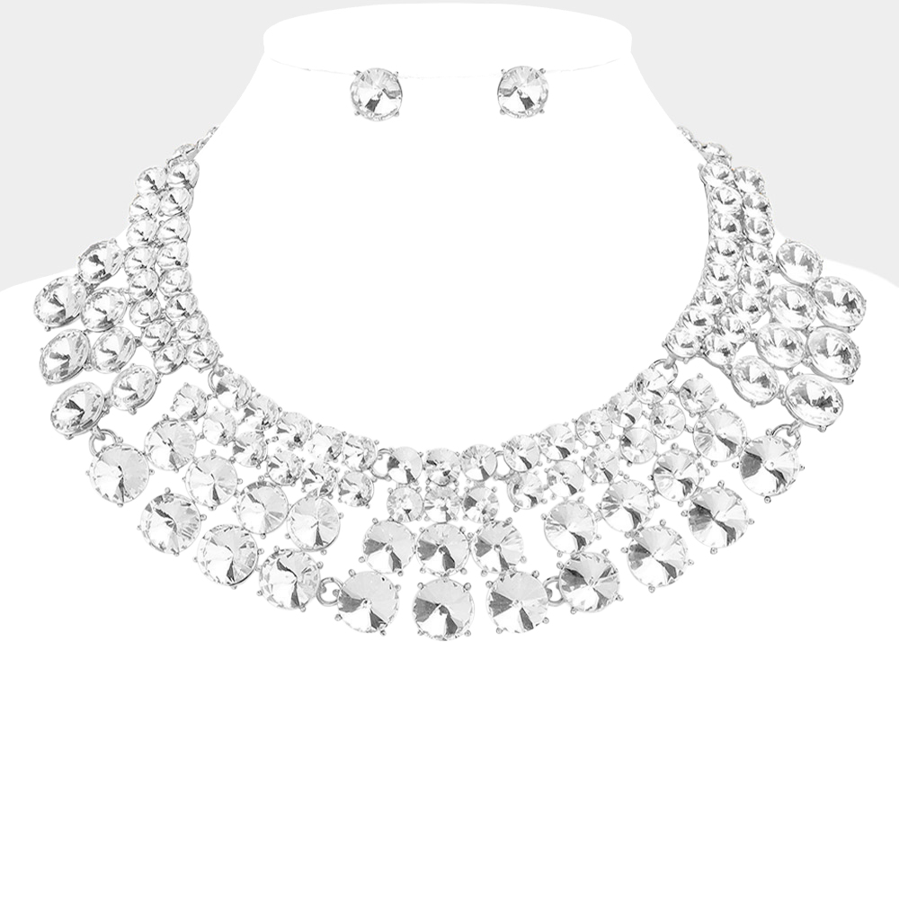 Baguette CZ Stone Pointed Rhinestone Paved Necklace