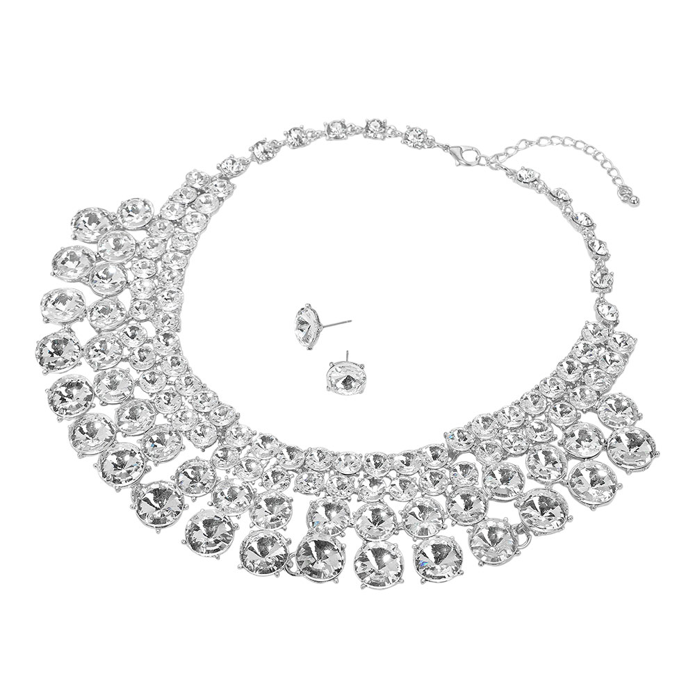 Oval Round Glass Stone Cluster Beaded Stretch Evening Bracelet