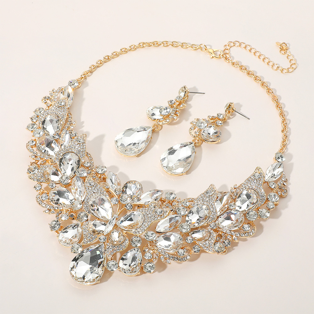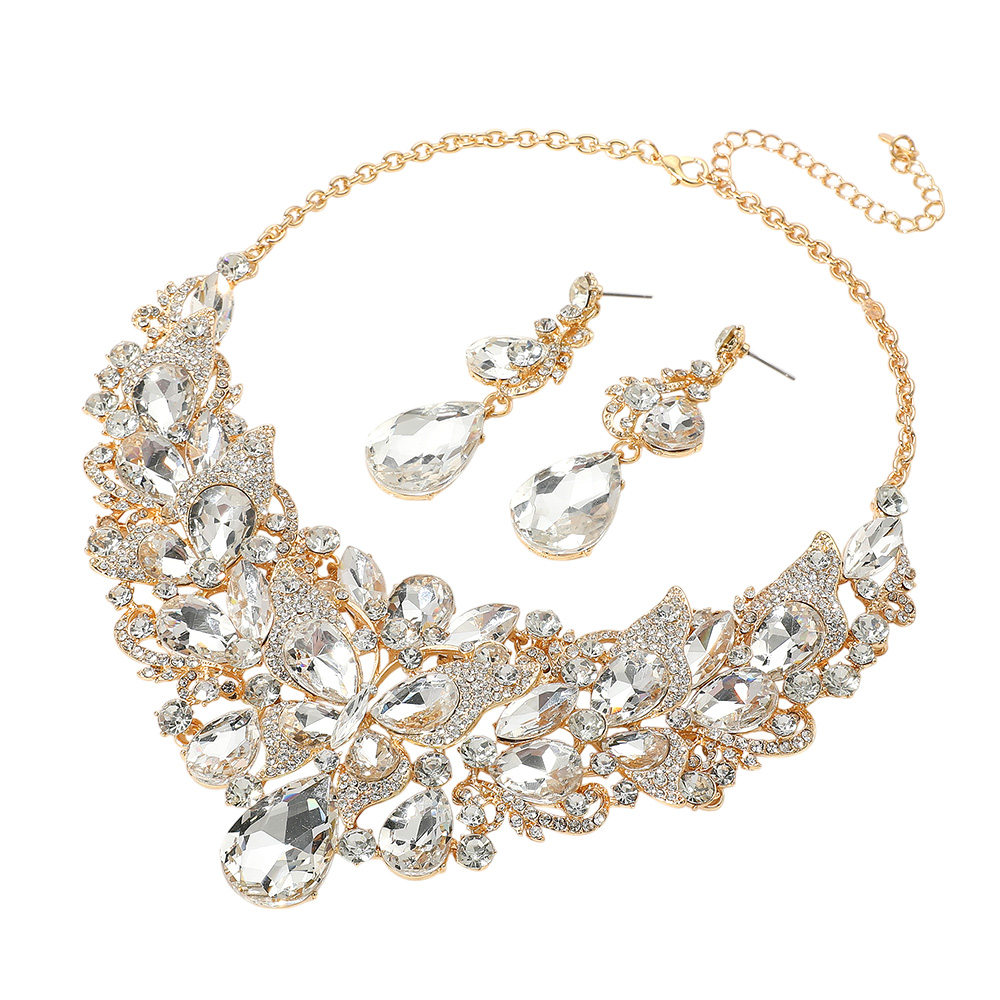 Details • Necklace Size : 21" + 4.25" L • Decor Size : 3" L • Earrings Size : 2.75" L • Turn heads with this butterfly crystal statement necklace and matching earrings set. Adorned with dazzling teardrop and floral accents, this bold jewelry set is perfect for weddings, galas, pageants, and formal events, adding radiant sparkle and elegance to your evening or bridal look.