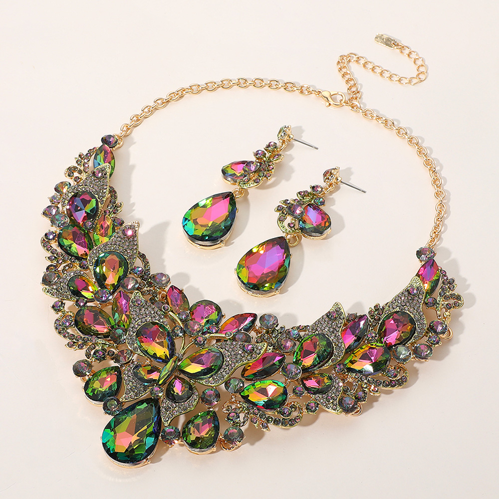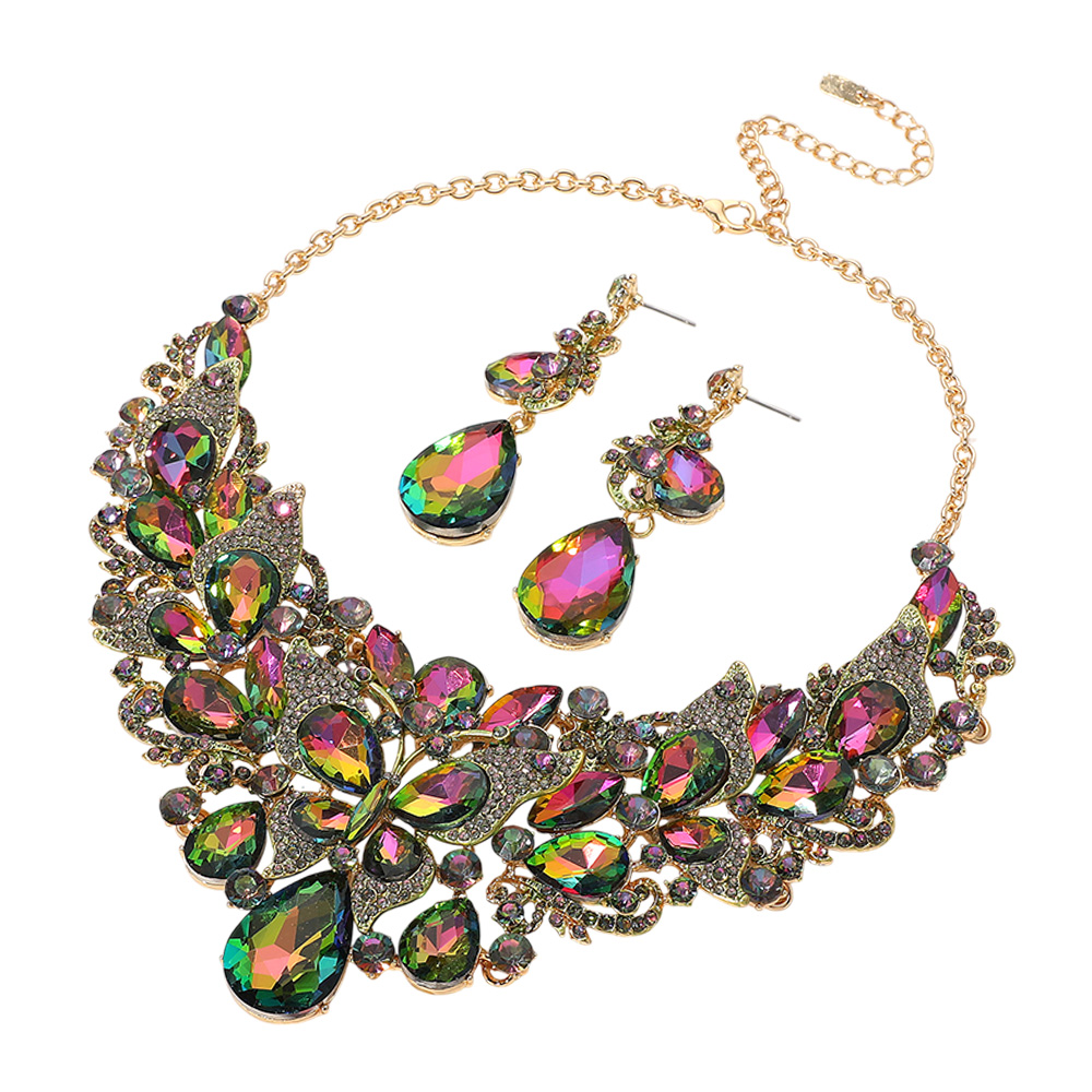 Butterfly Glass Stone Cluster Pointed Teardrop Stone Cluster Evening Necklace