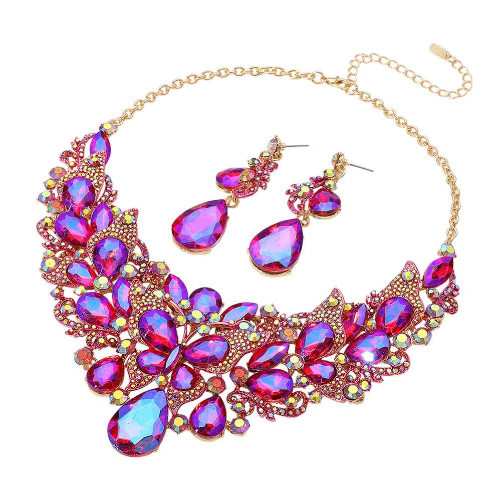 • Turn heads with this butterfly crystal statement necklace and matching earrings set. Adorned with dazzling teardrop and floral accents, this bold jewelry set is perfect for weddings, galas, pageants, and formal events, adding radiant sparkle and elegance to your evening or bridal look.