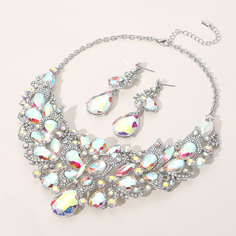Details • Necklace Size : 21" + 4.25" L • Decor Size : 3" L • Earrings Size : 2.75" L • Turn heads with this butterfly crystal statement necklace and matching earrings set. Adorned with dazzling teardrop and floral accents, this bold jewelry set is perfect for weddings, galas, pageants, and formal events, adding radiant sparkle and elegance to your evening or bridal look.