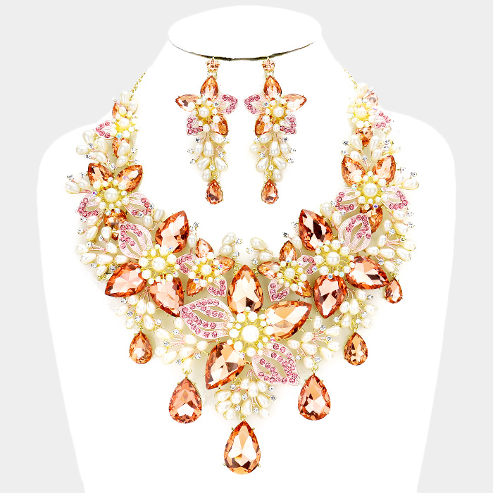 Crystal Pearl Flower Vine Evening Necklace