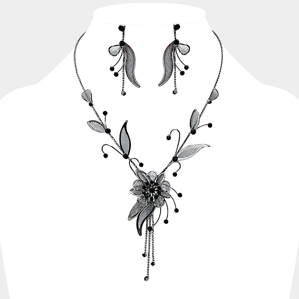 Crystal rhinestone metal mesh flower necklace