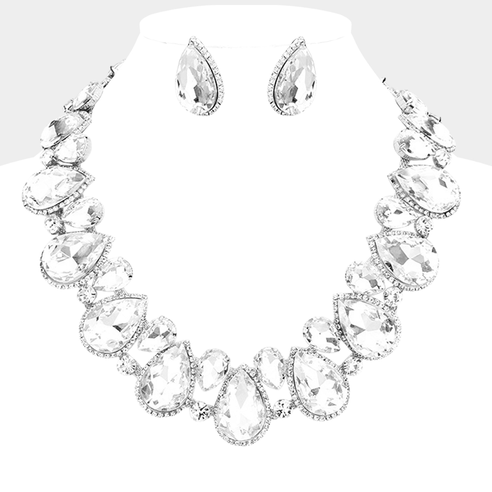Crystal Rhinestone Trim Teardrop Collar Evening Necklace