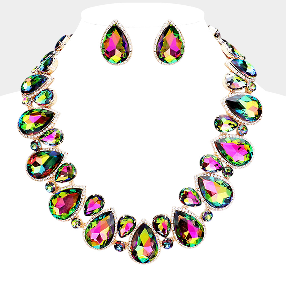 Crystal Rhinestone Trim Teardrop Collar Evening Necklace