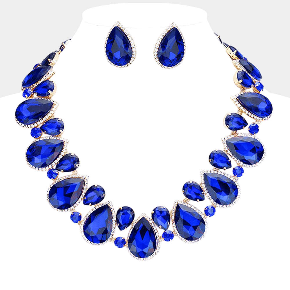 Crystal Rhinestone Trim Teardrop Collar Evening Necklace