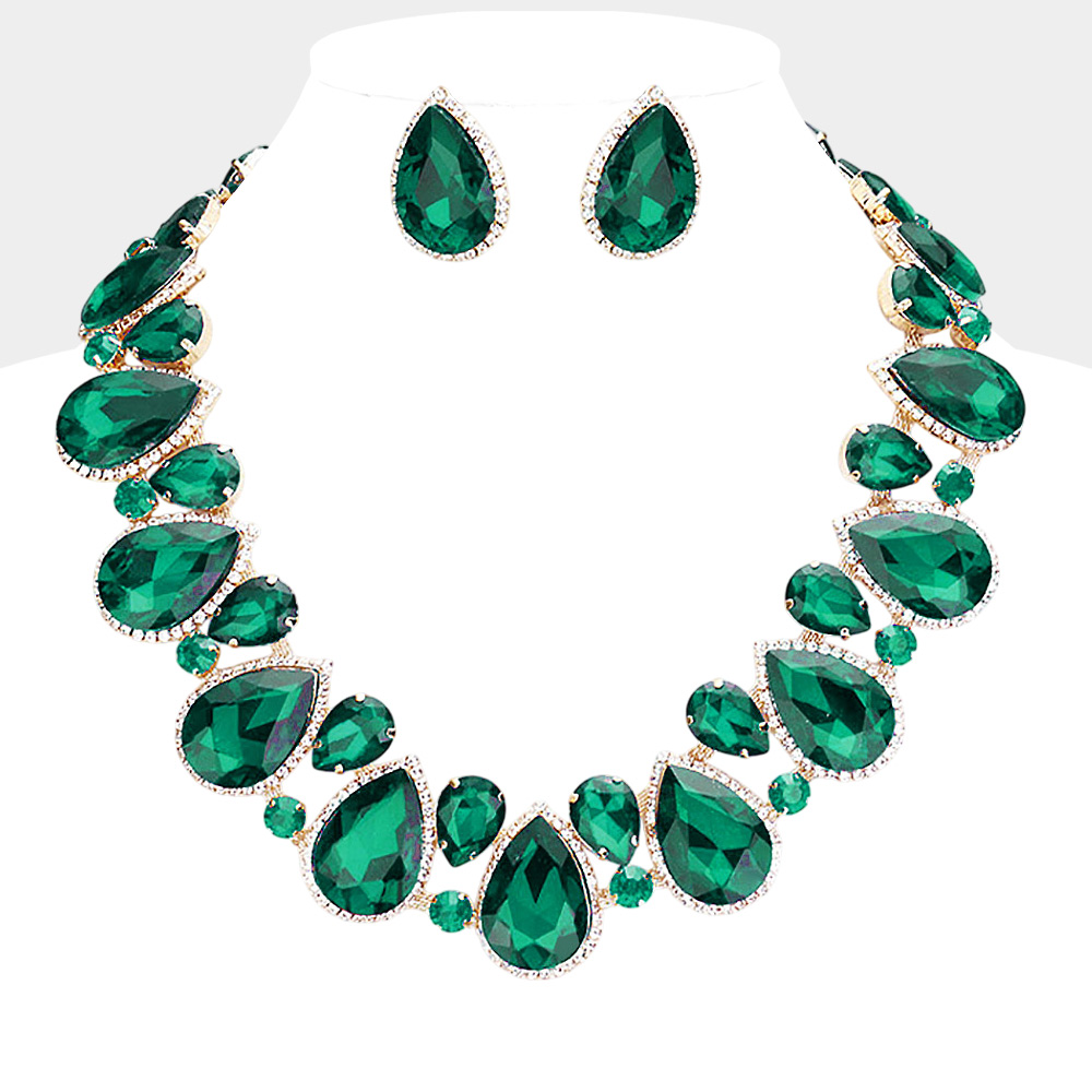Crystal Rhinestone Trim Teardrop Collar Evening Necklace