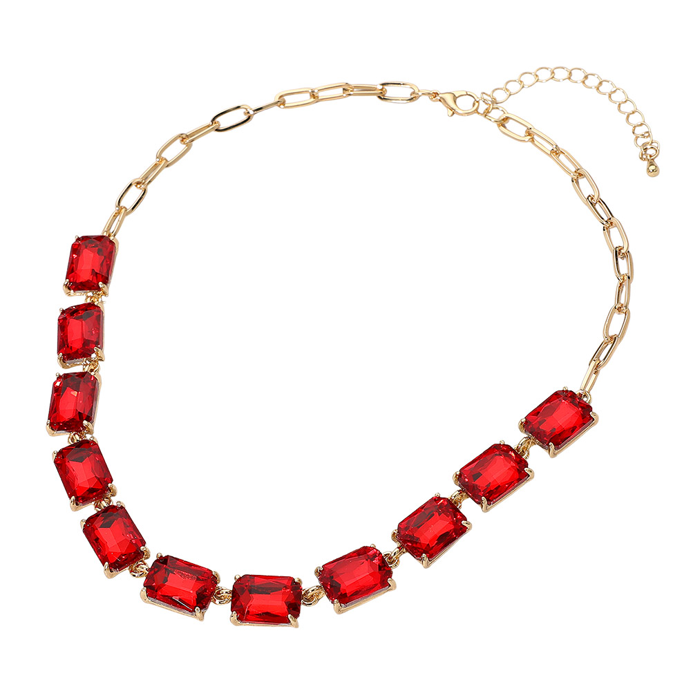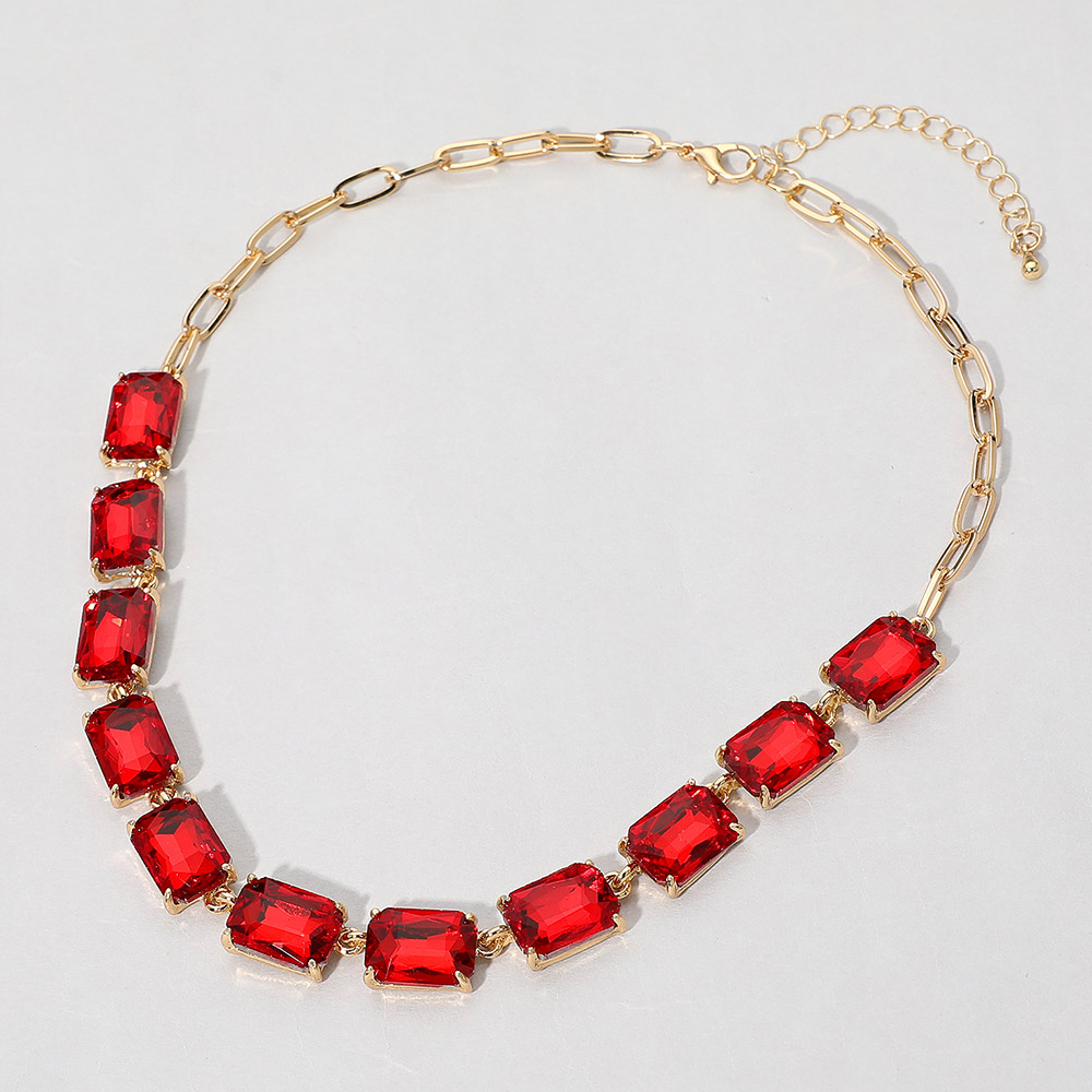 • This elegant gemstone chain necklace features a row of precisely cut stones linked with a sleek chain for a refined, modern look. Its adjustable closure ensures a comfortable fit, making it a sophisticated accessory for formal occasions, evening wear, or adding a statement touch to everyday style.