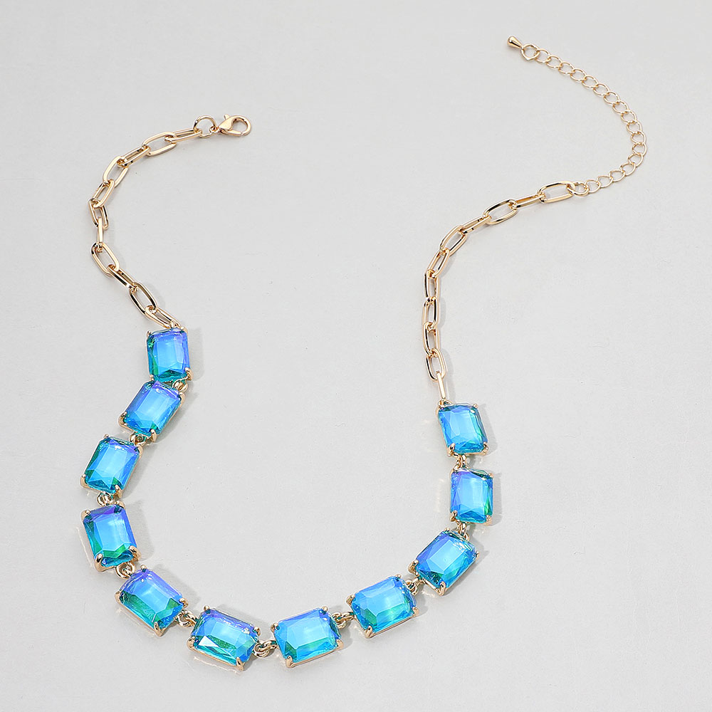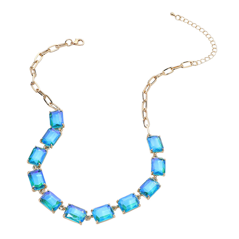 Cushion Rectangular Stone Cluster Link Evening Necklace