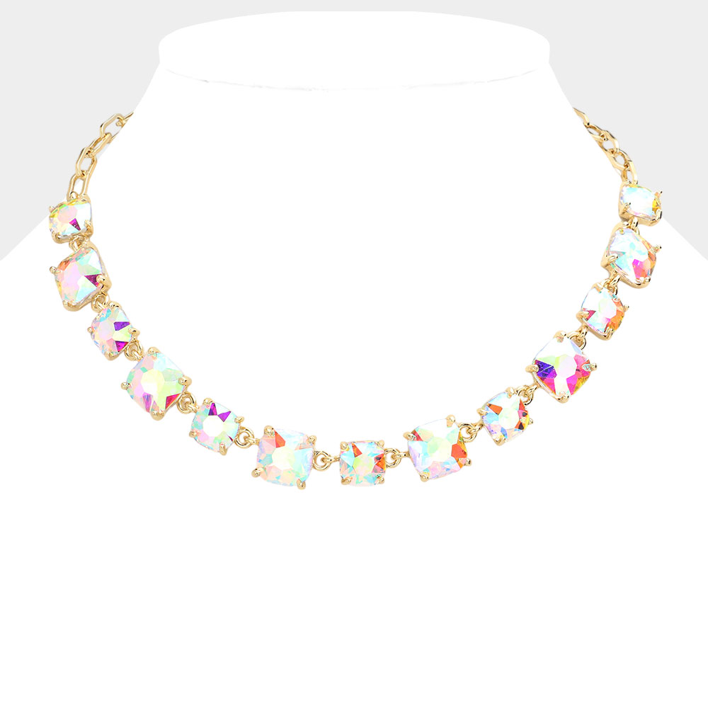 Cushion Square Stone Link Evening Necklace