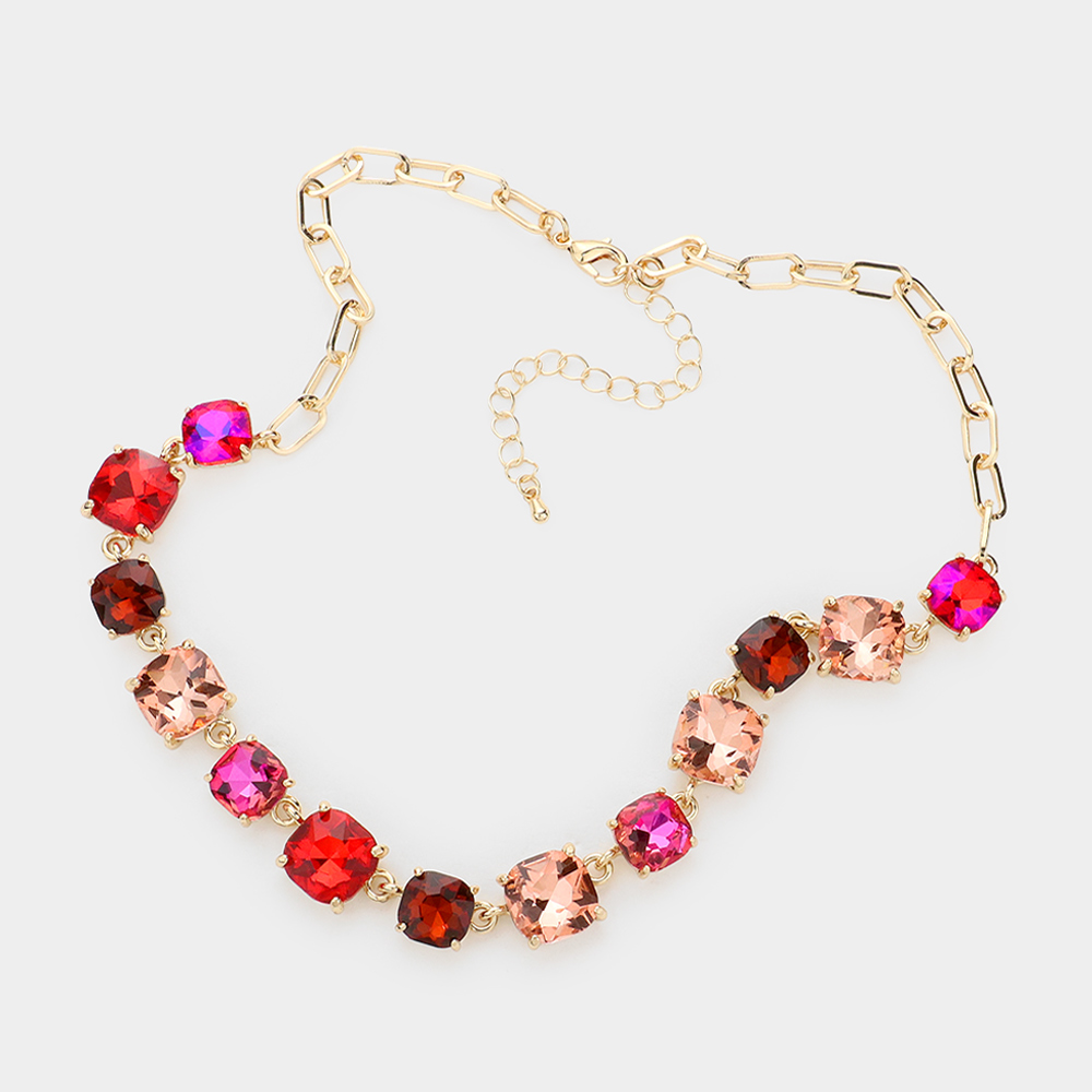 Teardrop Glass Crystal Pearl Vine Evening Necklace