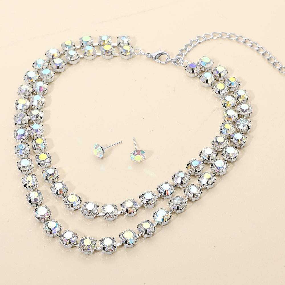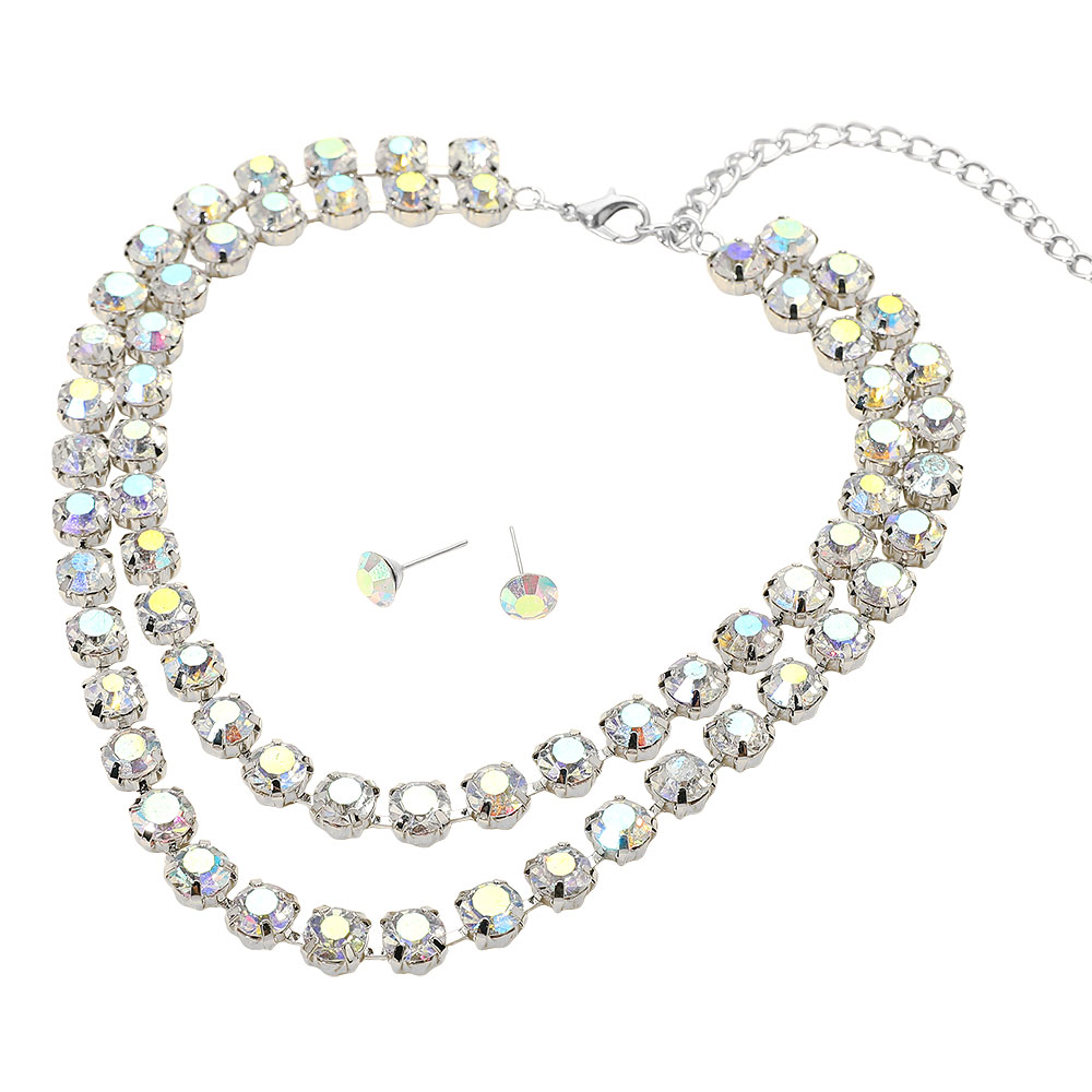 • This double row rhinestone necklace and matching stud earring set adds radiant sparkle to any outfit. Designed to enhance both casual and formal looks, it delivers timeless elegance and refined glamour—perfect for evening events, special occasions, or adding shine to everyday wear.