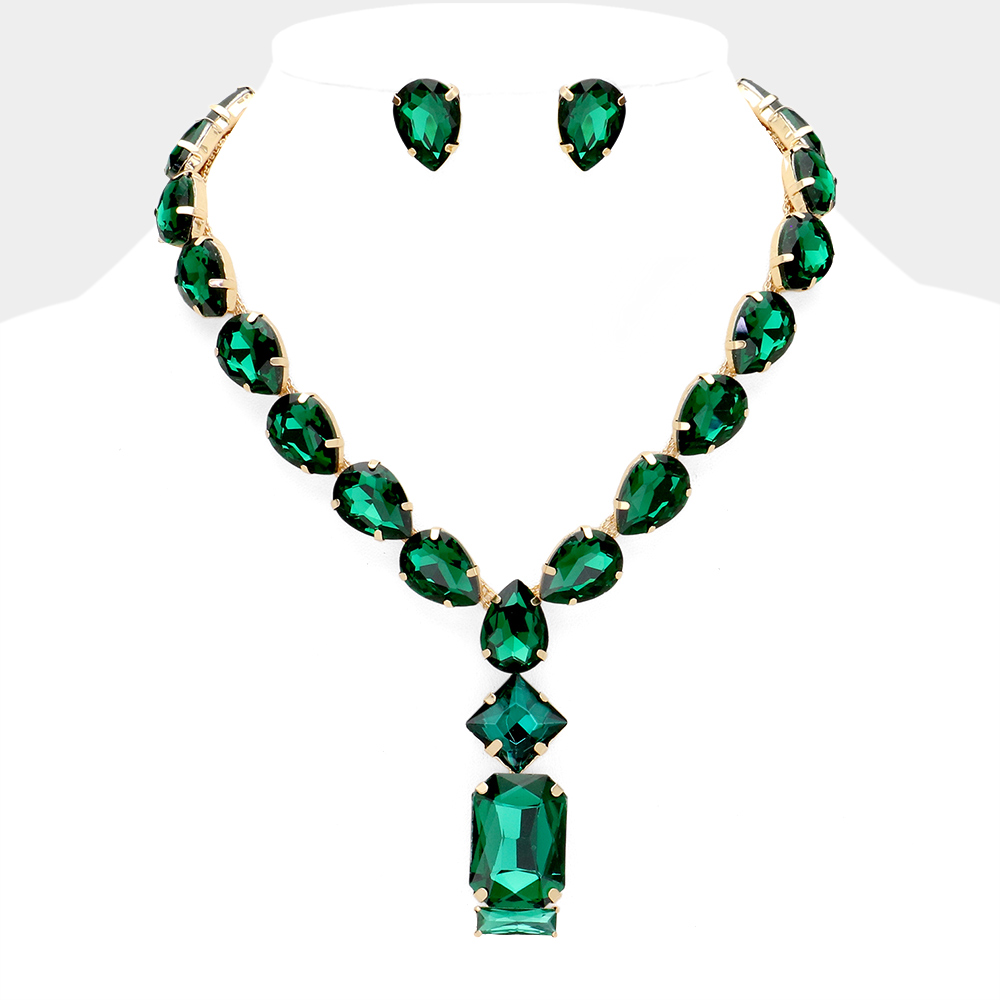 Emerald Cut Stone Cluster Pendant Pointed Teardrop Stone Cluster Link Evening Necklace