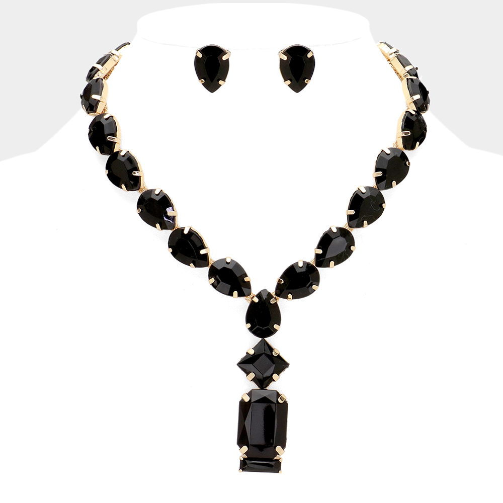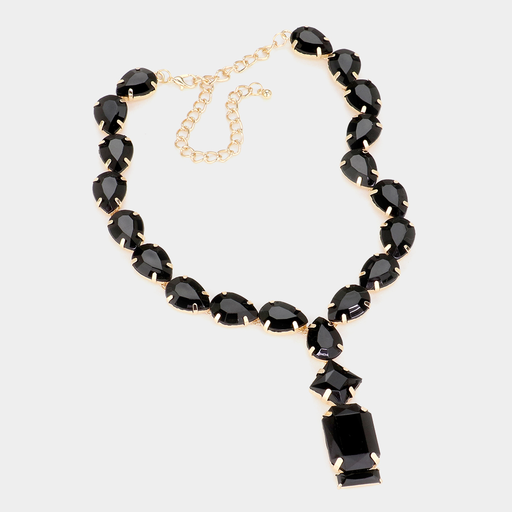 Emerald Cut Stone Cluster Pendant Pointed Teardrop Stone Cluster Link Evening Necklace