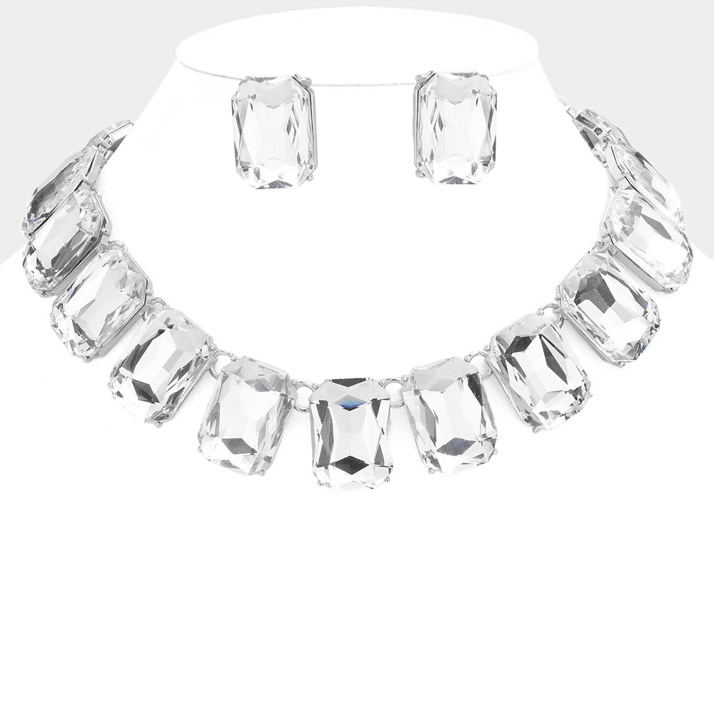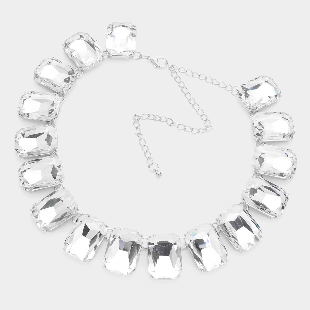 Teardrop Stone Cluster Accent Rhinestone Paved Floral Embellished Collar Statement Evening Necklace