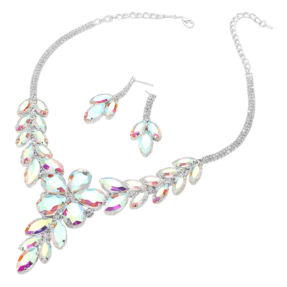 Teardrop Stone Accented Marquise Round Stone Embellished Chunky Collar Evening Necklace