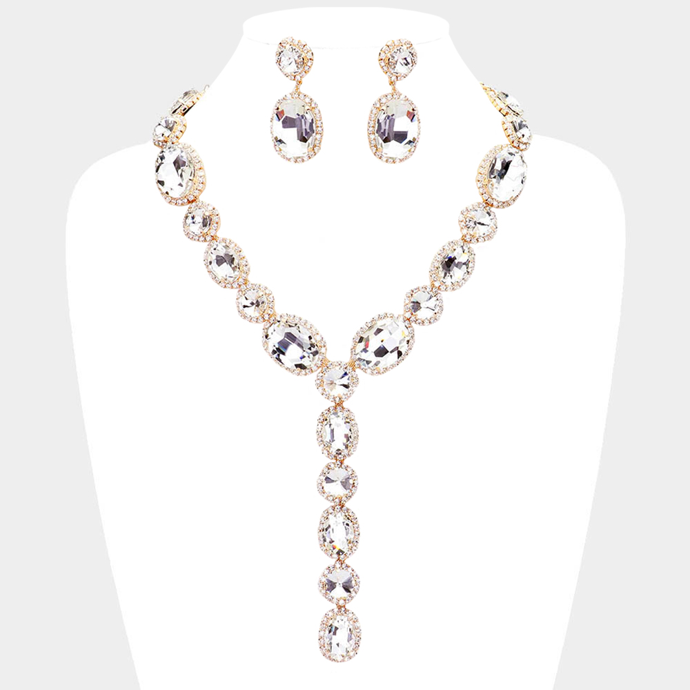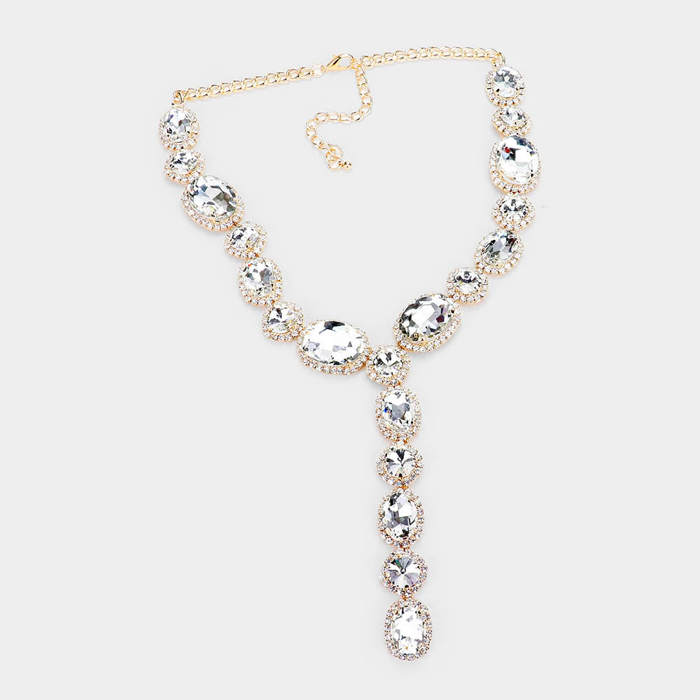 Glass Crystal Rhinestone Y Evening Necklace