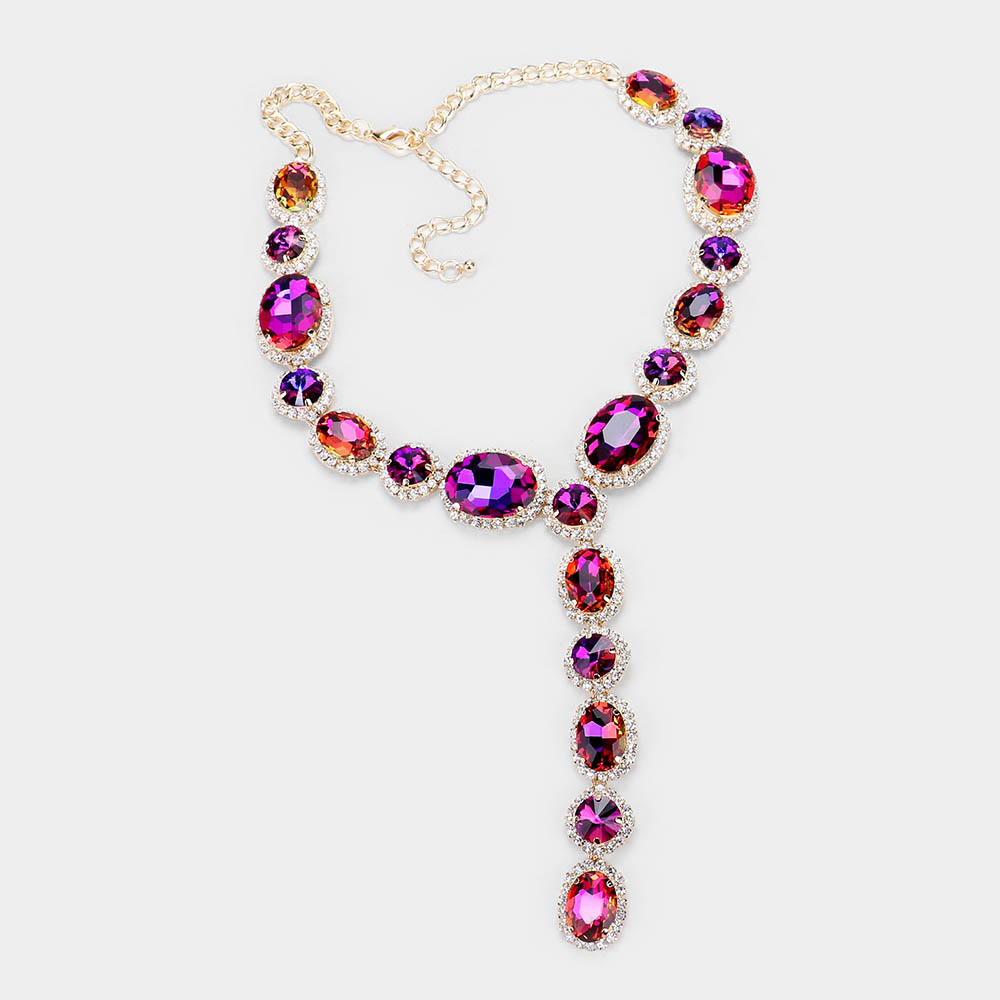 Pearl Round Teardrop Stone Accented Evening Necklace
