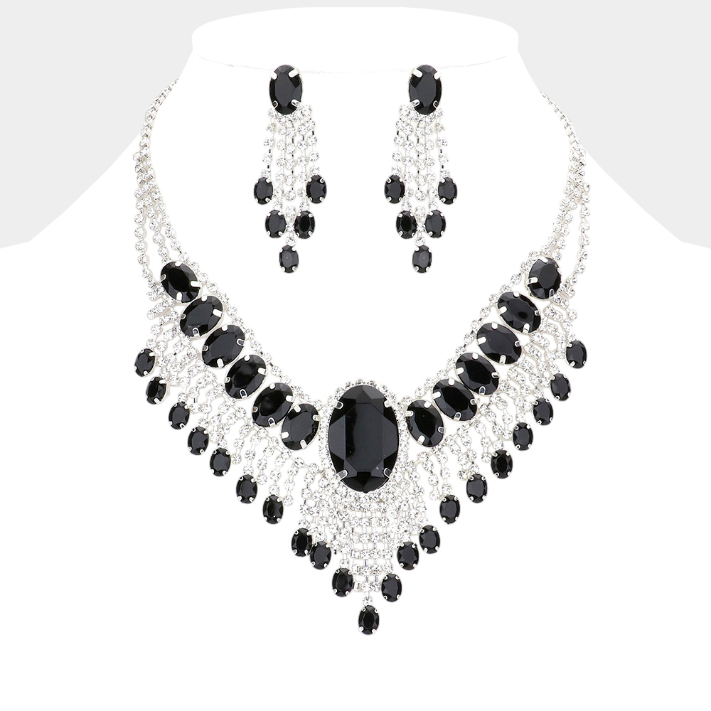 Crystal Rhinestone Bubbly Teardrop Necklace Clip on Earring Set
