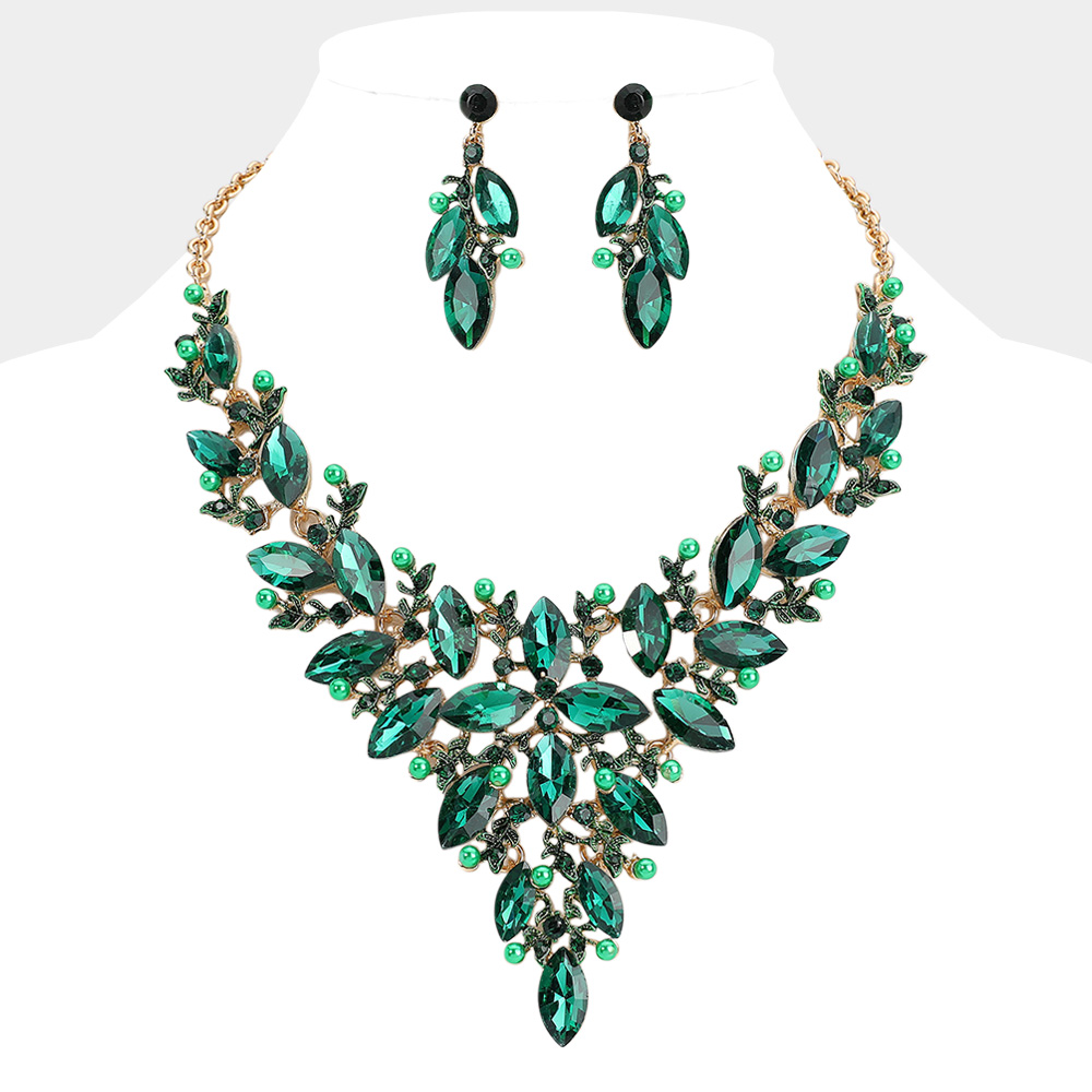 Marquise Glass Stone Cluster Pearl Embellished Vine Evening Necklace