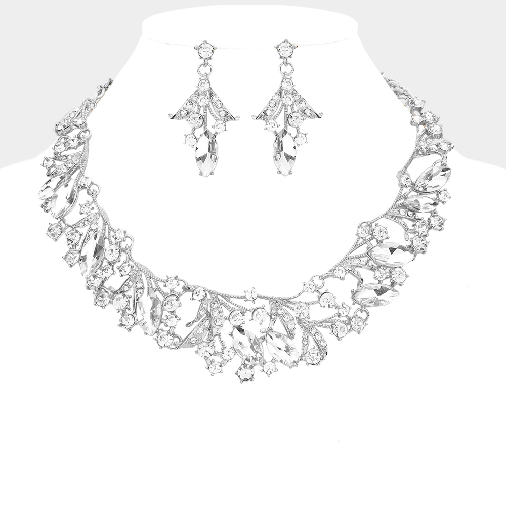 Oval Glass Stone Cluster Embellished Evening Necklace