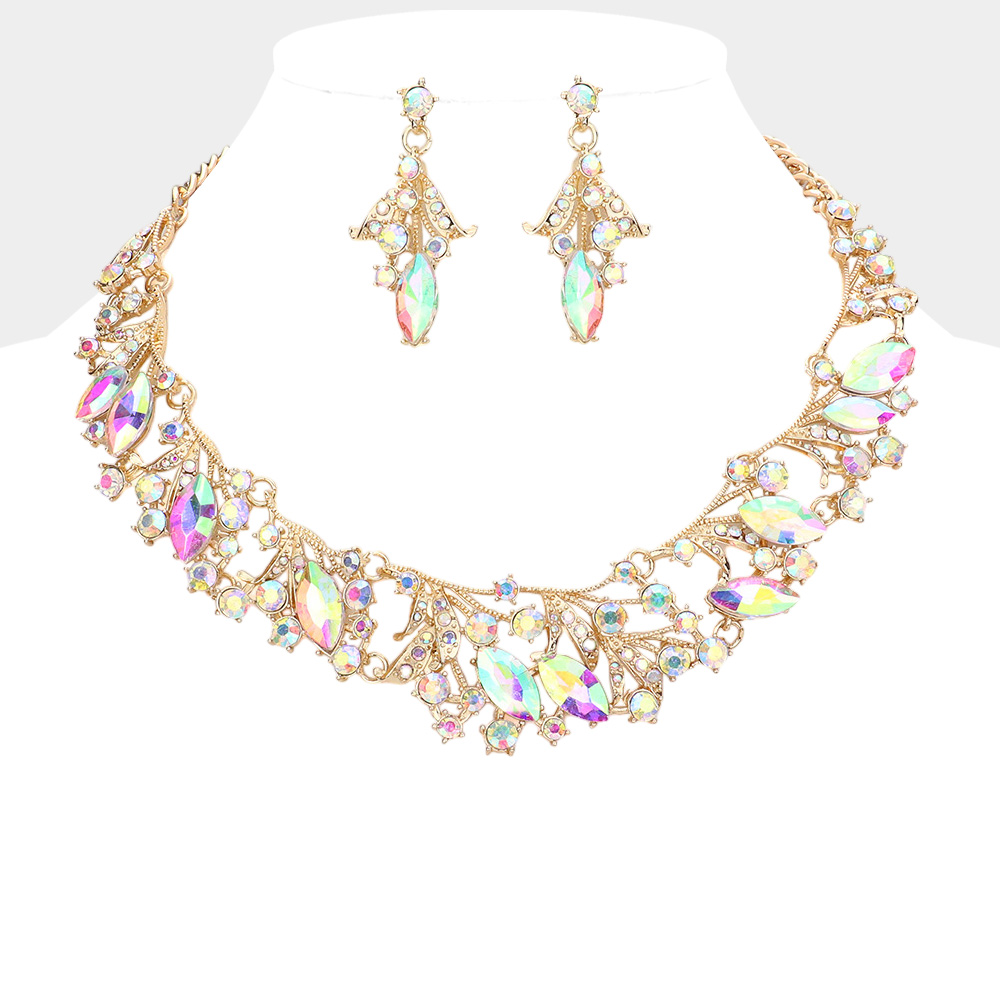 Marquise Stone Accented Leaf Evening Necklace