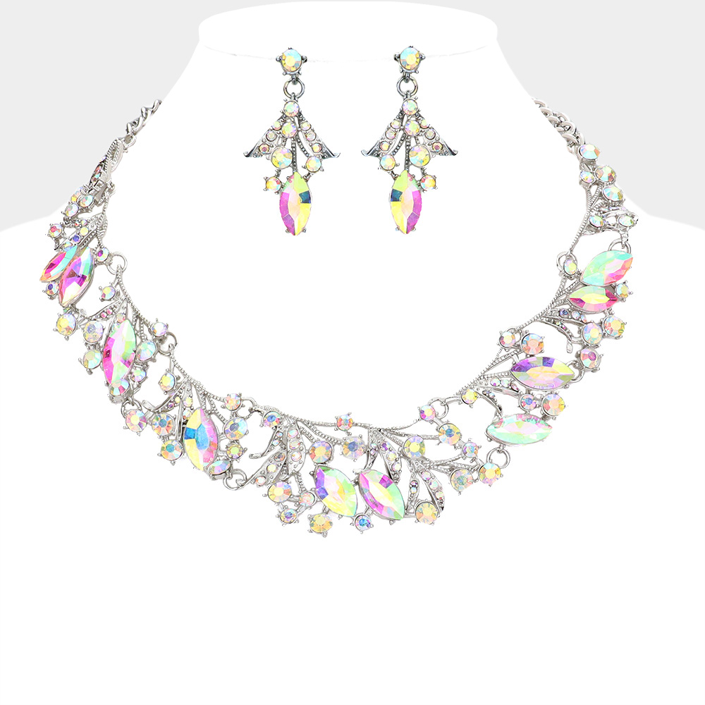 Oval Glass Stone Cluster Embellished Evening Necklace
