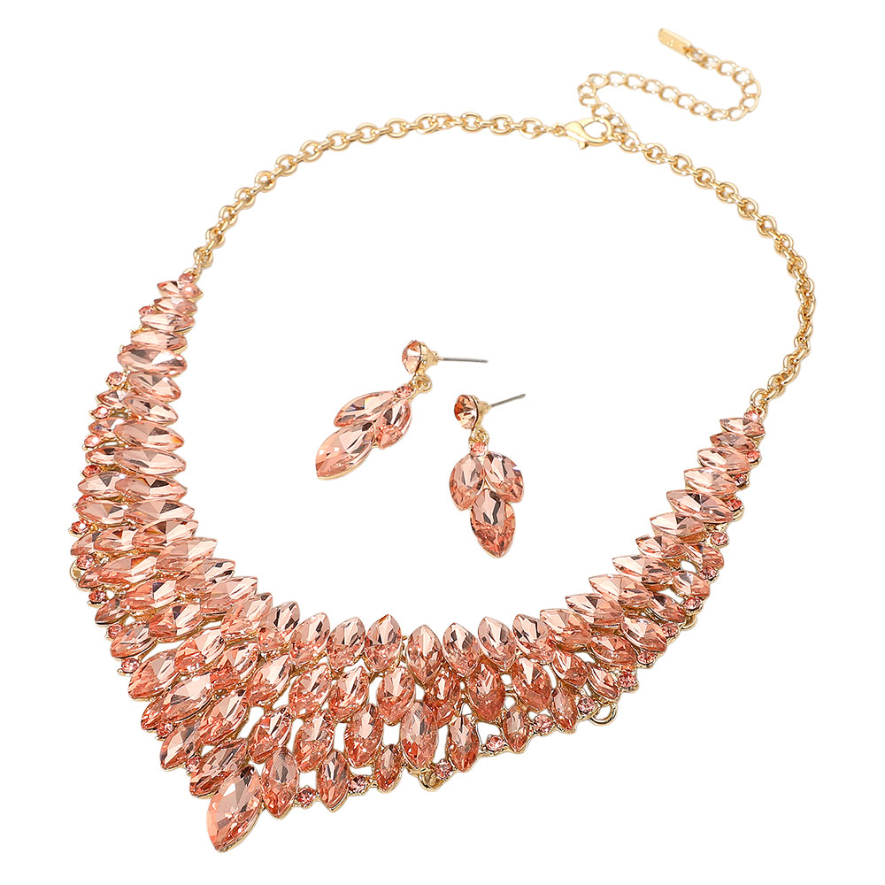 Marquise Stone Cluster Embellished Collar Evening Necklace