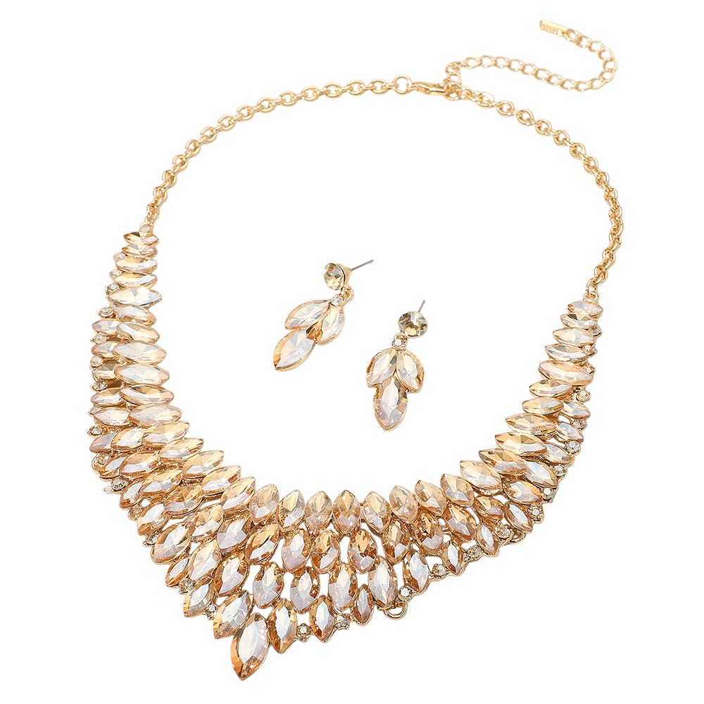 • Shine with elegance in this sparkling crystal necklace and earrings set, designed with a bold layered style for maximum impact. Perfect for weddings, parties, and special occasions, this statement jewelry set adds sophistication and glamour, making it a stunning gift for fashion enthusiasts.