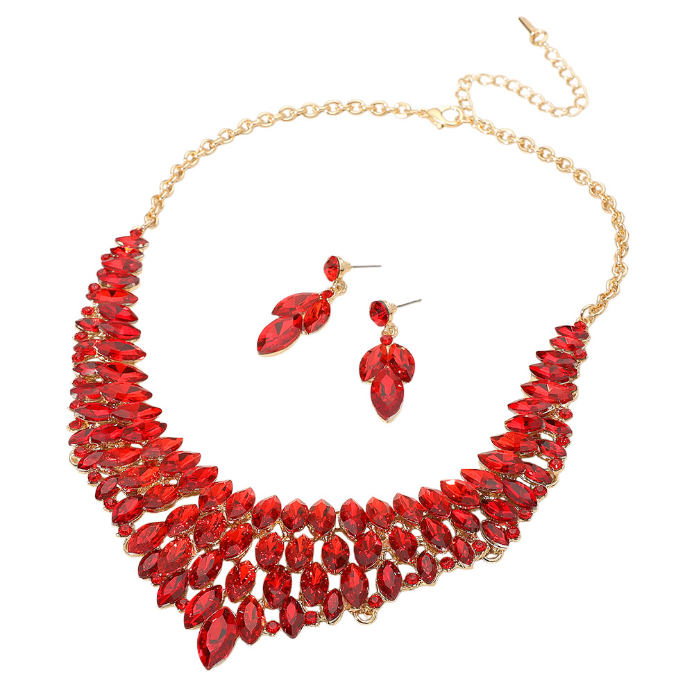 Marquise Stone Cluster Embellished Collar Evening Necklace