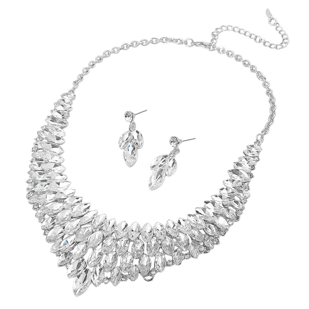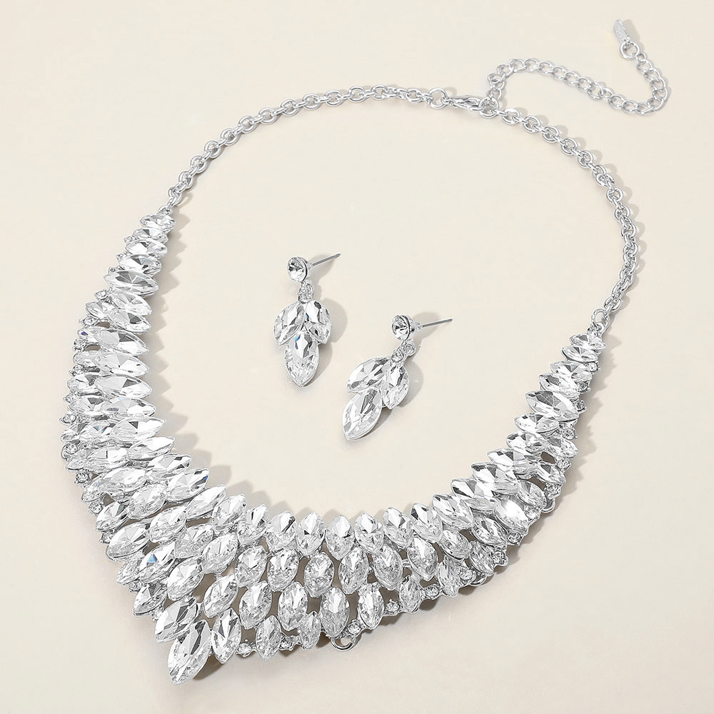 • Shine with elegance in this sparkling crystal necklace and earrings set, designed with a bold layered style for maximum impact. Perfect for weddings, parties, and special occasions, this statement jewelry set adds sophistication and glamour, making it a stunning gift for fashion enthusiasts.