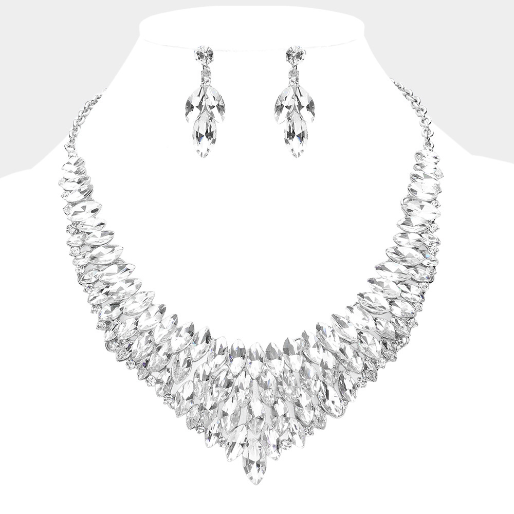Marquise Stone Cluster Embellished Collar Evening Necklace
