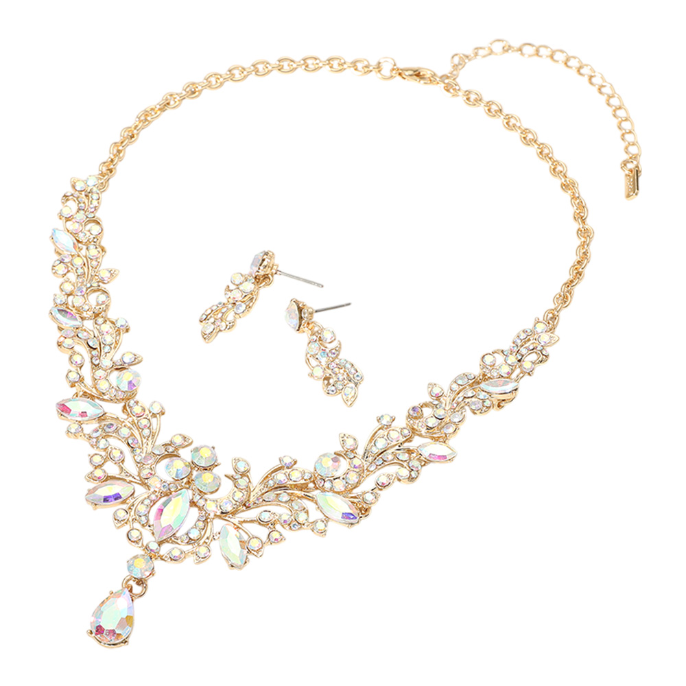 Teardrop Marquise Stone Accented Dangle Evening Earrings