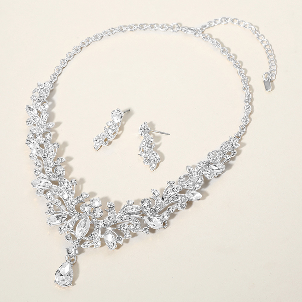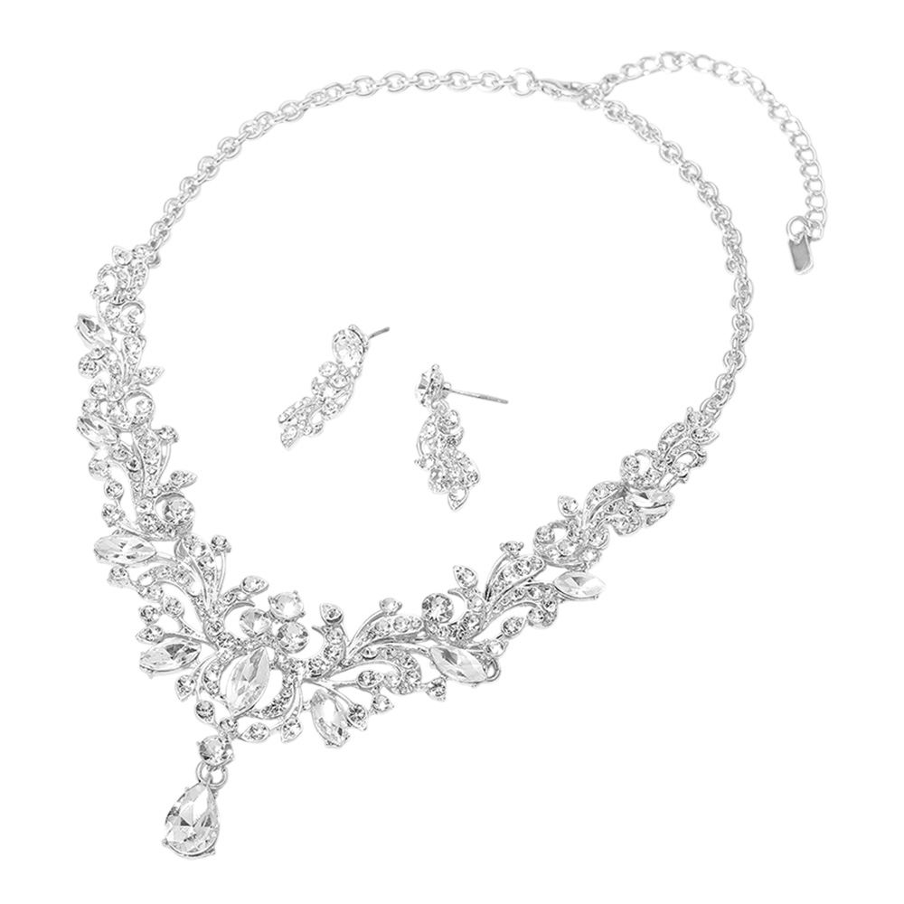 Round Stone Cluster Collar Rhinestone Paved Jewelry Set