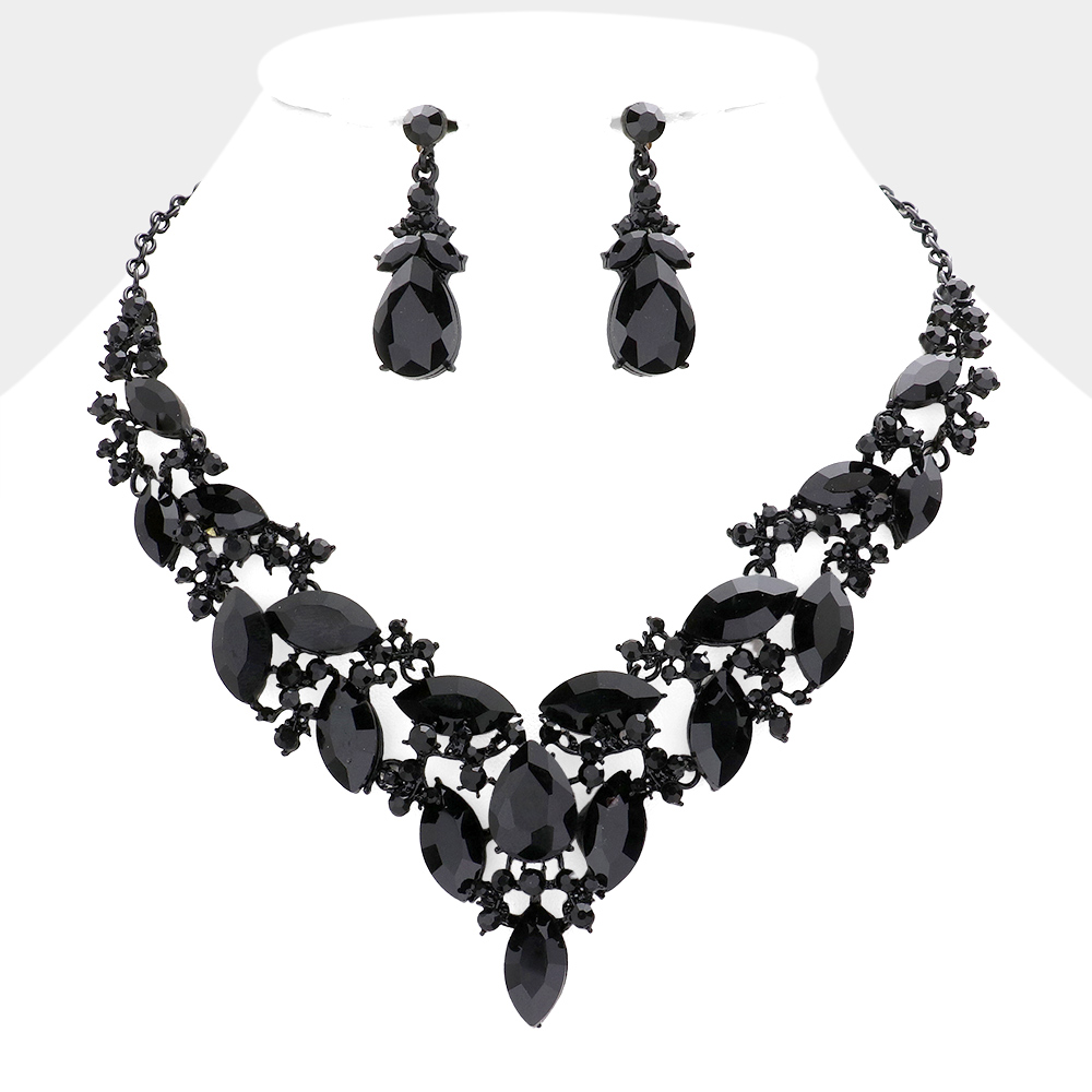 Marquise Stone Cluster Evening Necklace