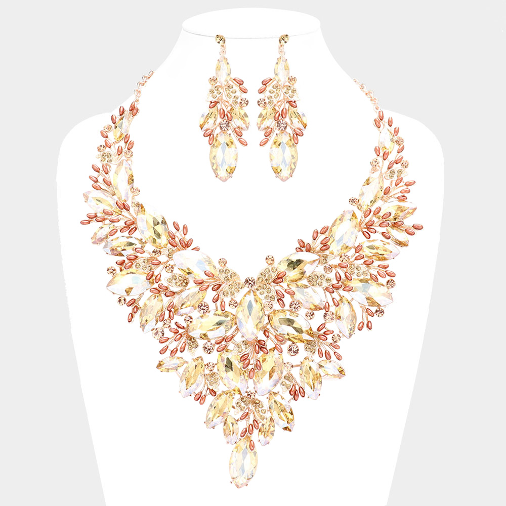 Marquise Stone Cluster Leaf Evening Necklace