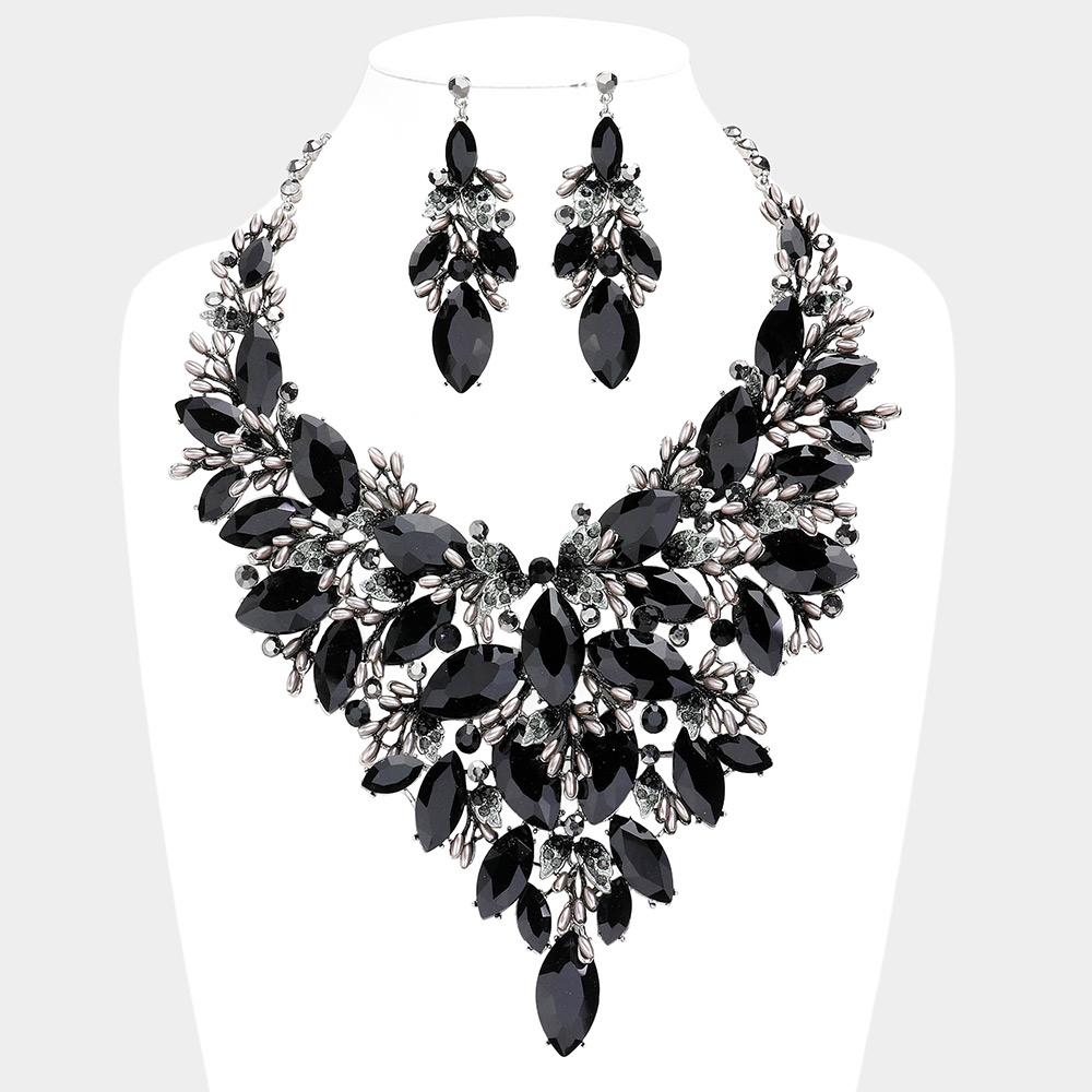 Rhinestone Paved Flower Leaf Pointed Hair Comb