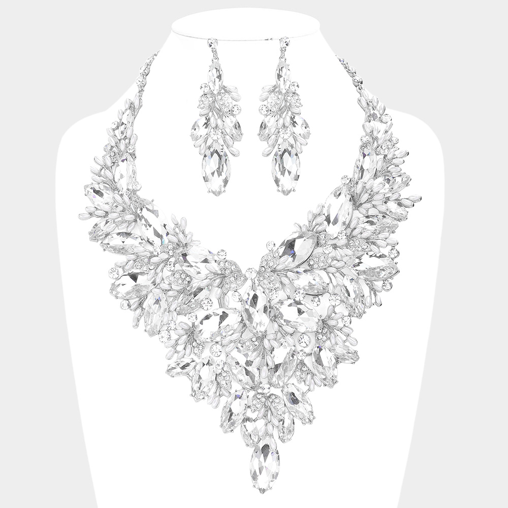 Teardrop Stone Accented Leaf Cluster Evening Necklace
