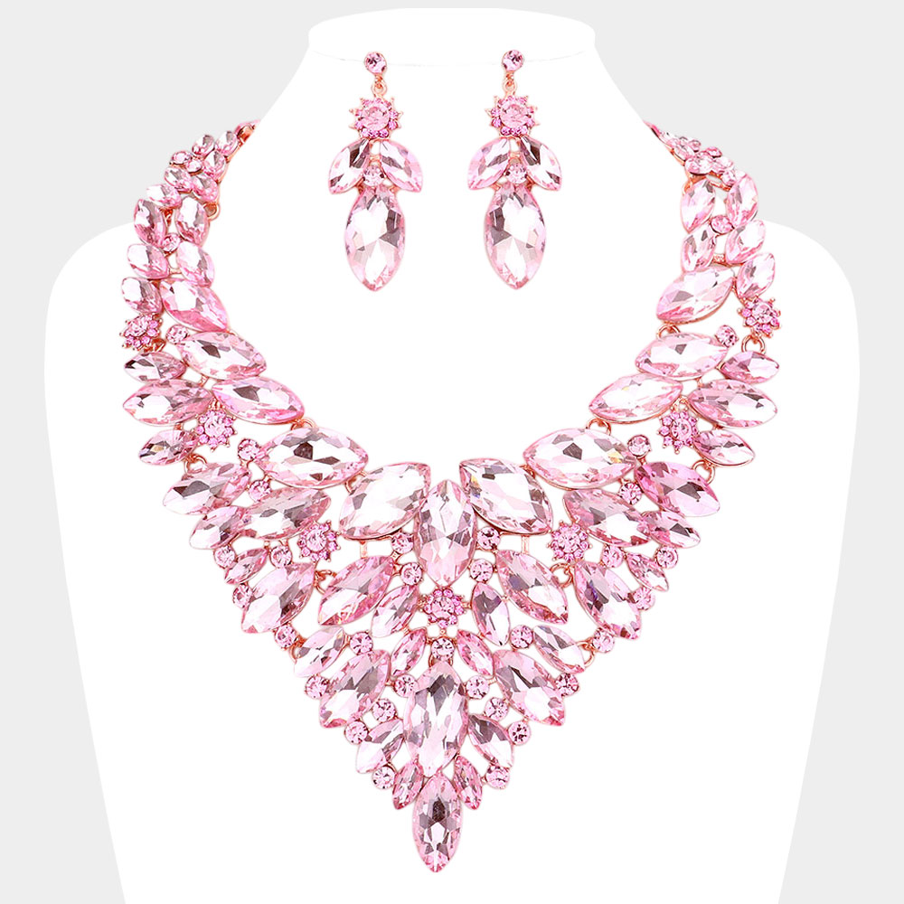 Marquise Stone Cluster Statement Evening Necklace