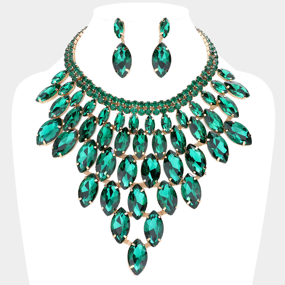 Teardrop Accented Marquise Stone Cluster Evening Earrings