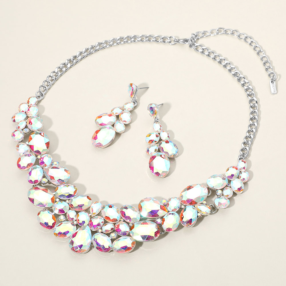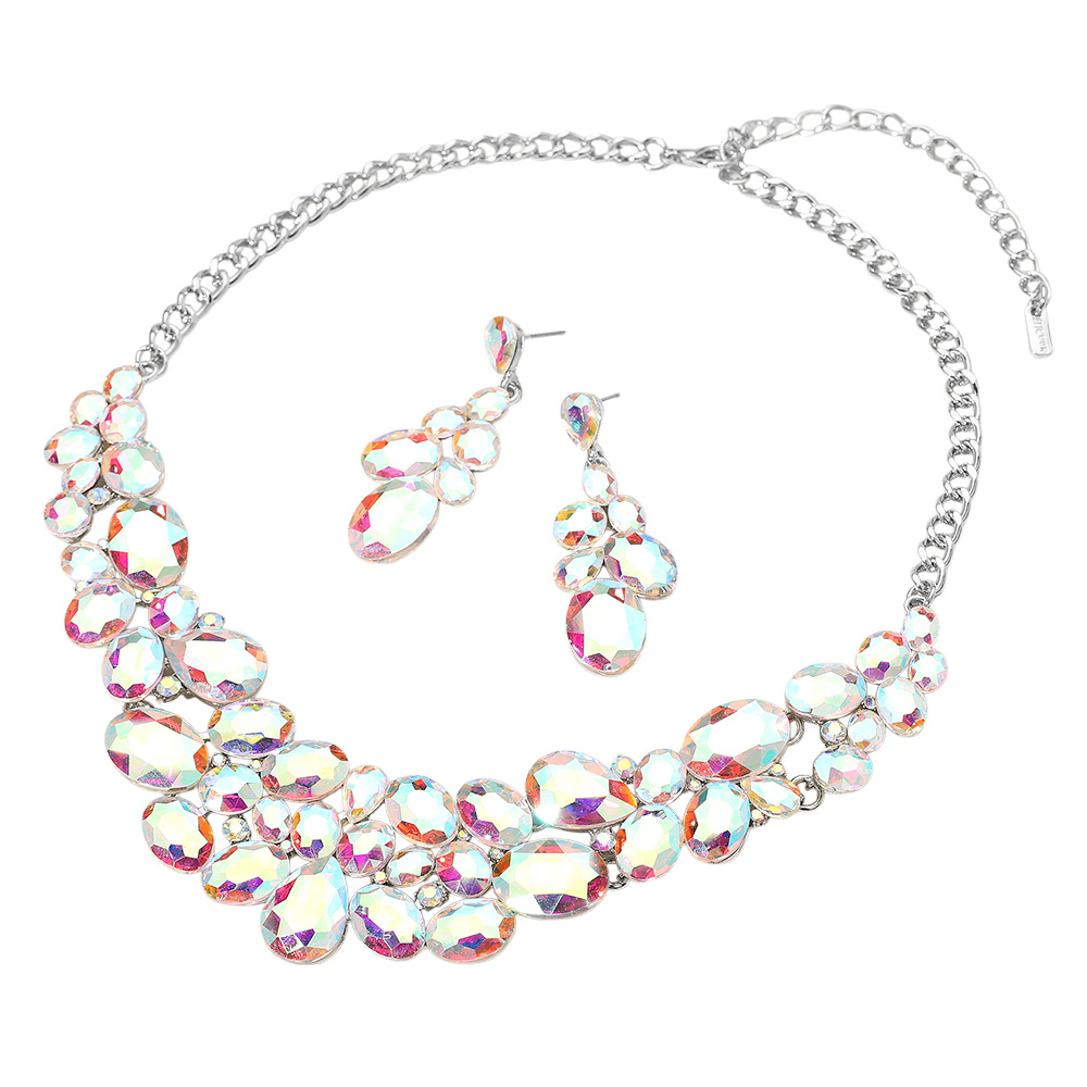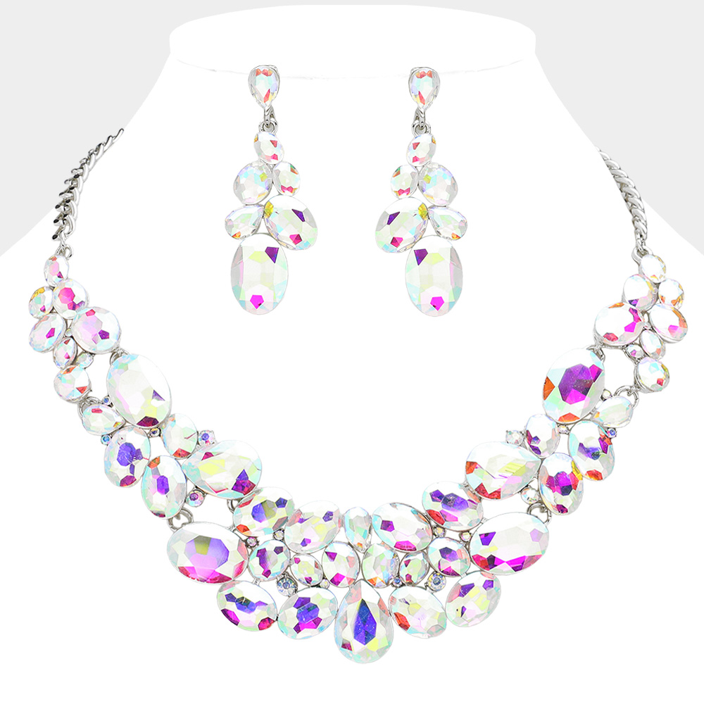 Oval Glass Stone Cluster Embellished Evening Necklace