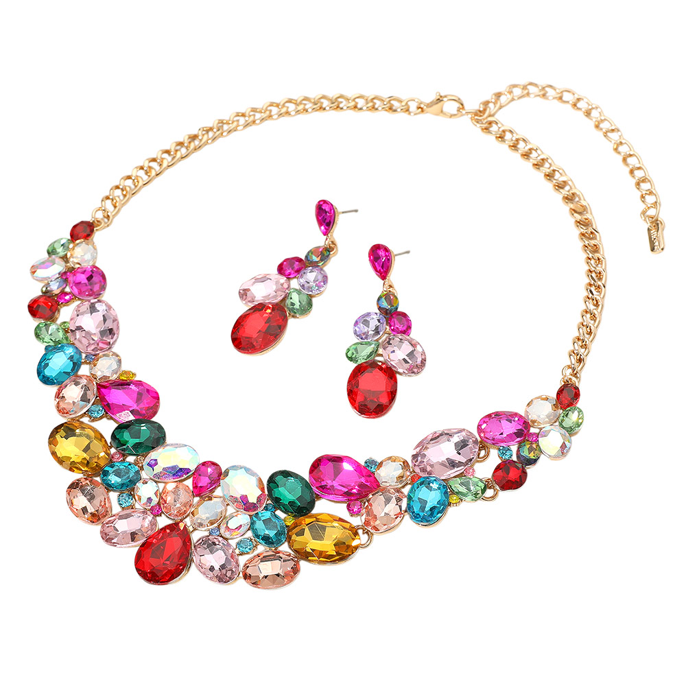 Faceted Teardrop Oval Rectangle Stone Cluster Link Dropdown Evening Earrings